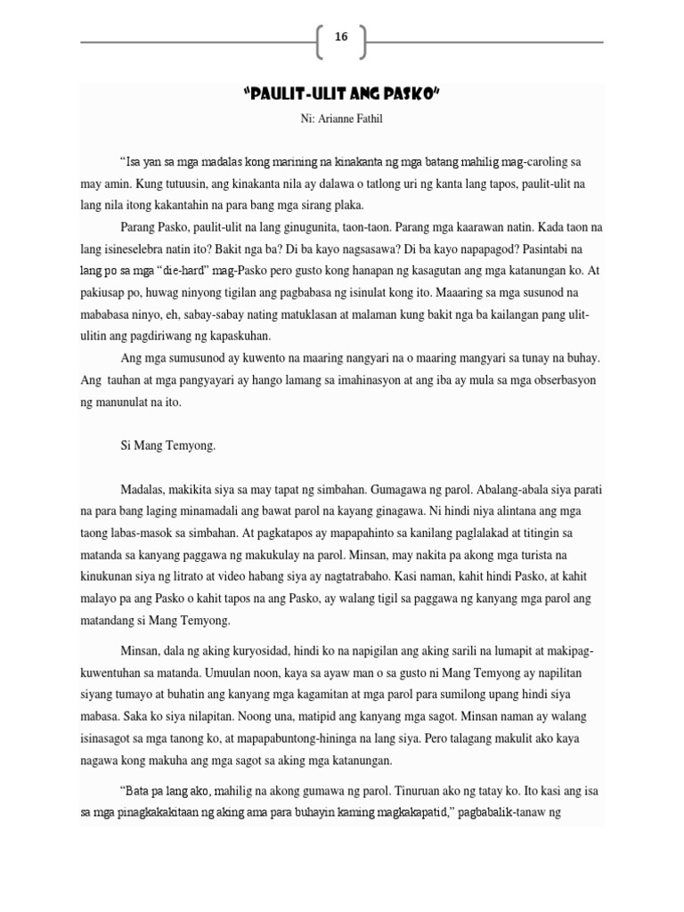 Ang mga Tayutay Ang tayutay ay mga pahayag na ginagamit ng makata o manunulat man upang sadyang ilayo sa karaniwang paggamit ang mga salita nang sa gayon ay nagkakaroon ito ng hindi lantad o. 1162020 Ngayong nabasa mo na ang gabay sa pagsusulat ng maikling kwento inaanyayahan namin ang lahat na lumahok sa patimpalak ng Hive PH. Gumawa ng isang listahan ng mga prop lokasyon at lokal na aktor at isipin kung paano sila maaaring magbigay ng kontribusyon sa isang magandang kwento.