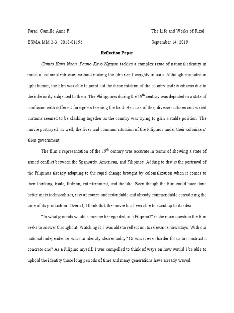 Ganito Kami Noon Paano Kayo Ngayon Reaction Paper English