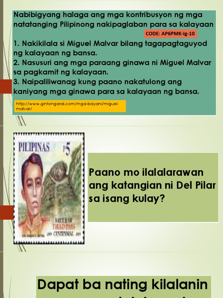 Devices Ap6 Qi Week 9 Day 2 Mga Kontribusyon Ng Mga Natatanging Pilipinong Nakipaglaban Para Sa Kalyaan Miguel Malvar