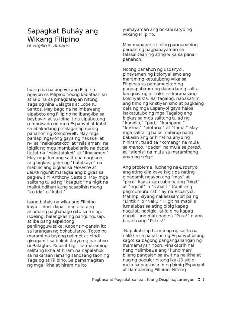 Kung walang iisang wika ang wikang Filipino mararating kaya natin ang. Kahit na sa simpleng paguusap gamitin ang wikang Filipino ngunit kasabay ng iyong paggamit ay panatilihing wasto ang pagbanggit ng wikang ito upang di maimpliwensiyahan ang mas nakababata nating kababayan. 272019 Ang hindi magmahal sa sariling wika ay higit pa ang amoy sa malansang isda ayon kay.